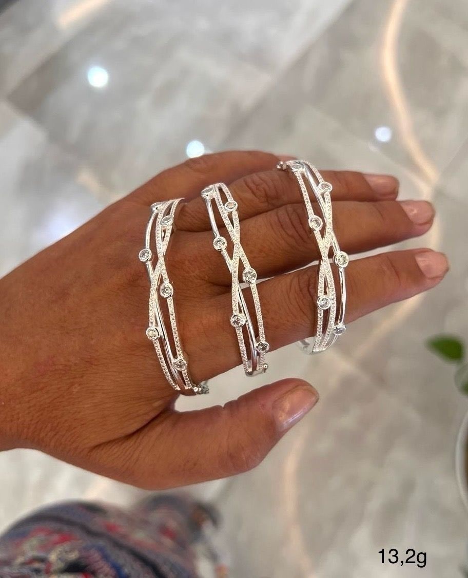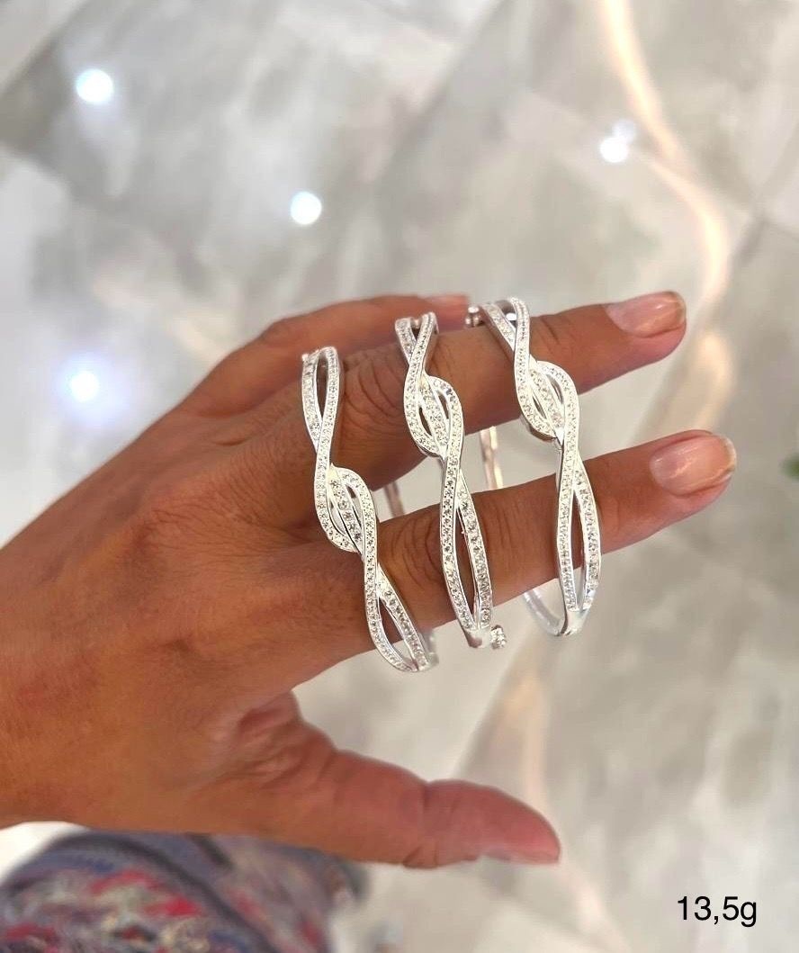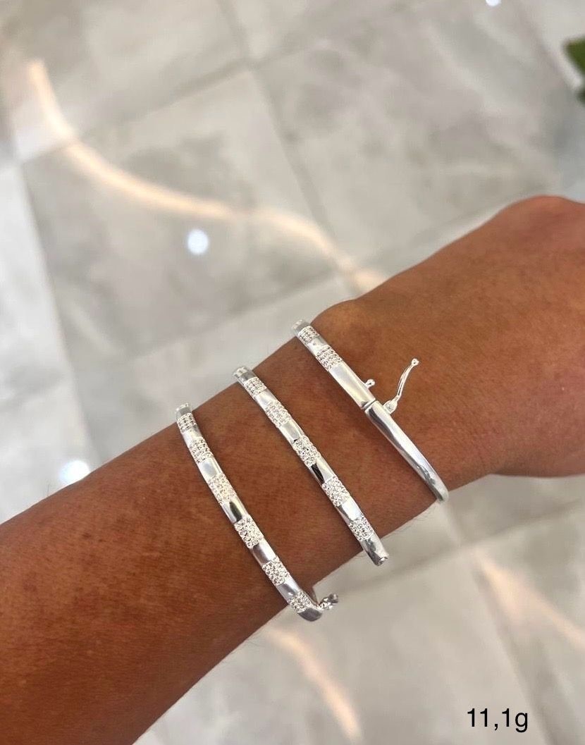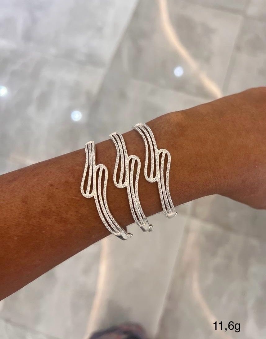 Brazalete pinza de plata 925 con circones, la pulsera se abre por el lateral.