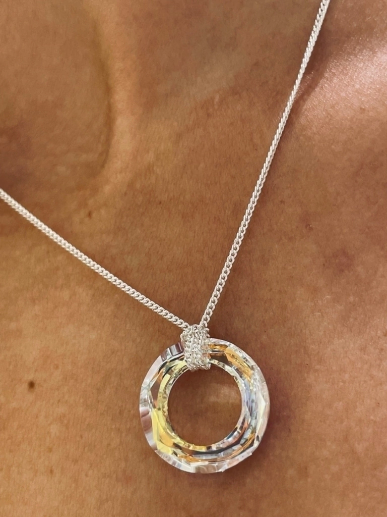 Cadena Grumet de plata 925, largo 45 cl , con dona swarovski boreal de 2 cm.