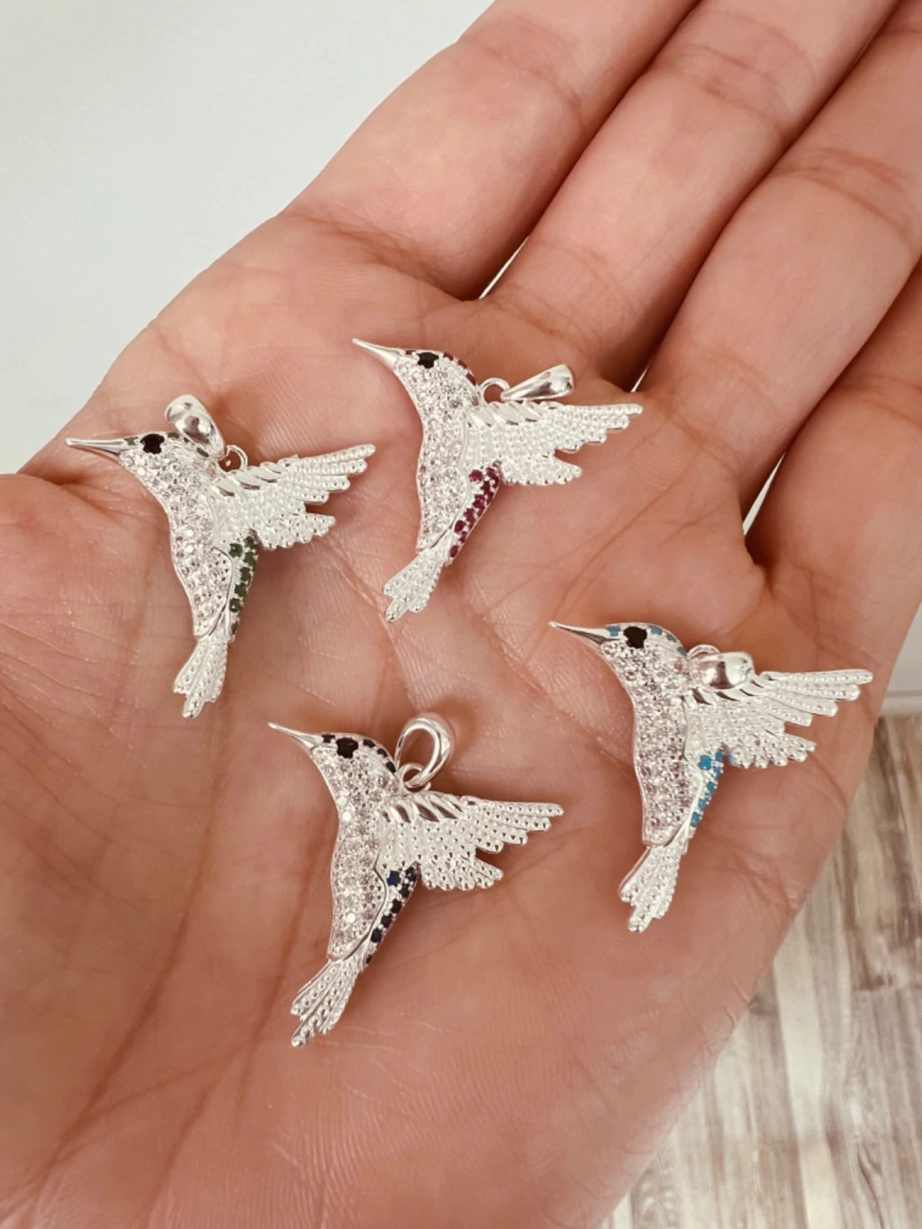 Dije de colibrí con piedras de Plata 925.