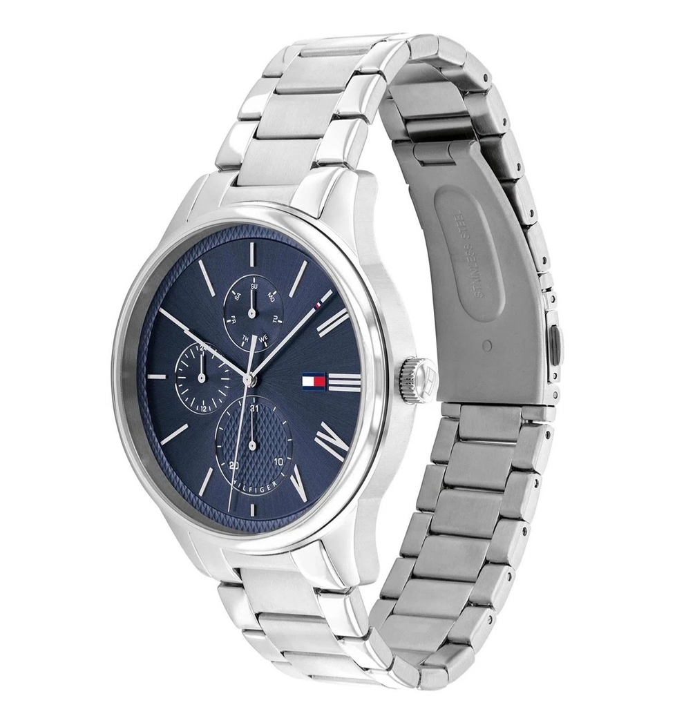 El reloj Tommy Hilfiger Damon pertenece a una colección que es un clásico para todos los días, con detalles inesperados. La esfera estampada con proporciones asimétricas de subdiales se mantiene en una caja de 44 mm de acero inoxidable y pulsera de acero. Tiene una resistencia al agua de 5 ATM / 50 metros.